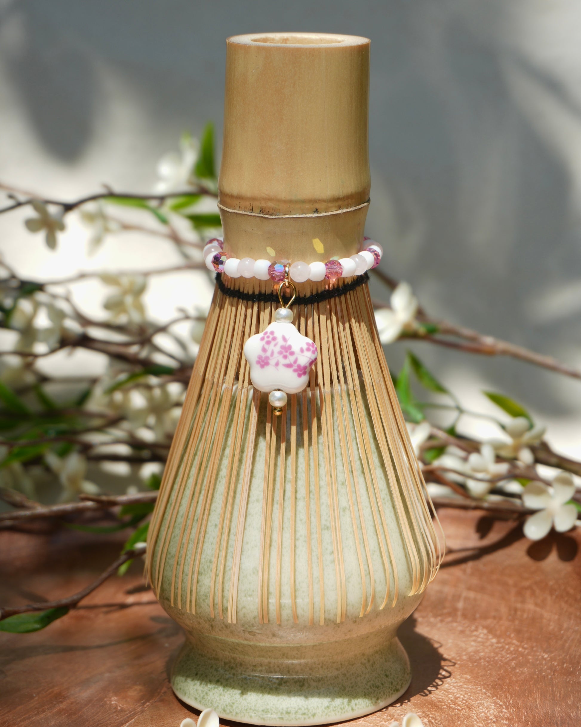 Add a touch of calm and matcha magic with our handcrafted Matcha Chasen Charm. Inspired by the traditional tea whisk that brings every cup of matcha to life, each charm is created with carefully handmade ceramic pendant, high-quality beads, and Aurora Borealis crystal accents that sparkle like morning dew in the light. This unique matcha charm is perfect for matcha lovers, tea enthusiasts, and anyone who adores artisanal, handmade accessories.