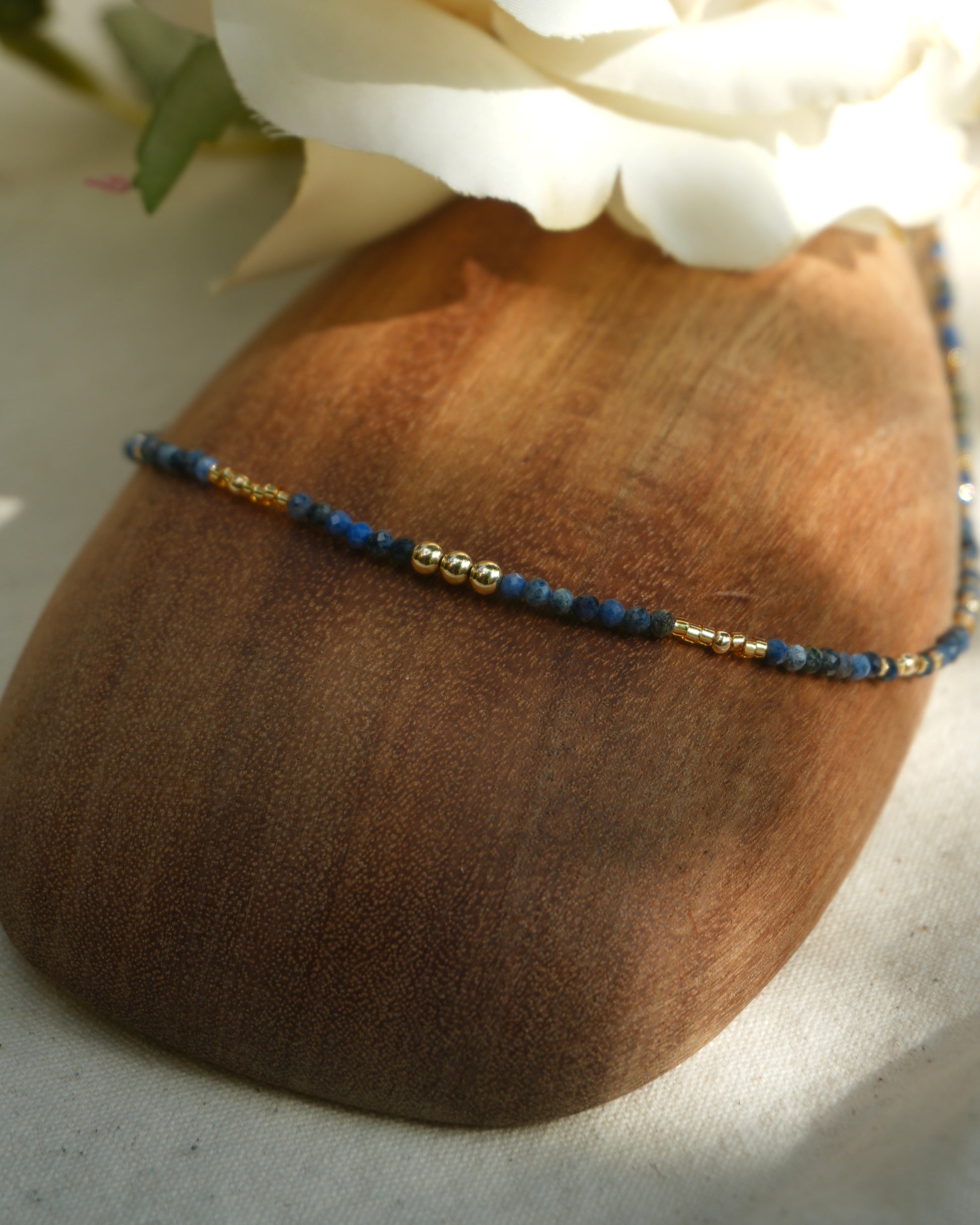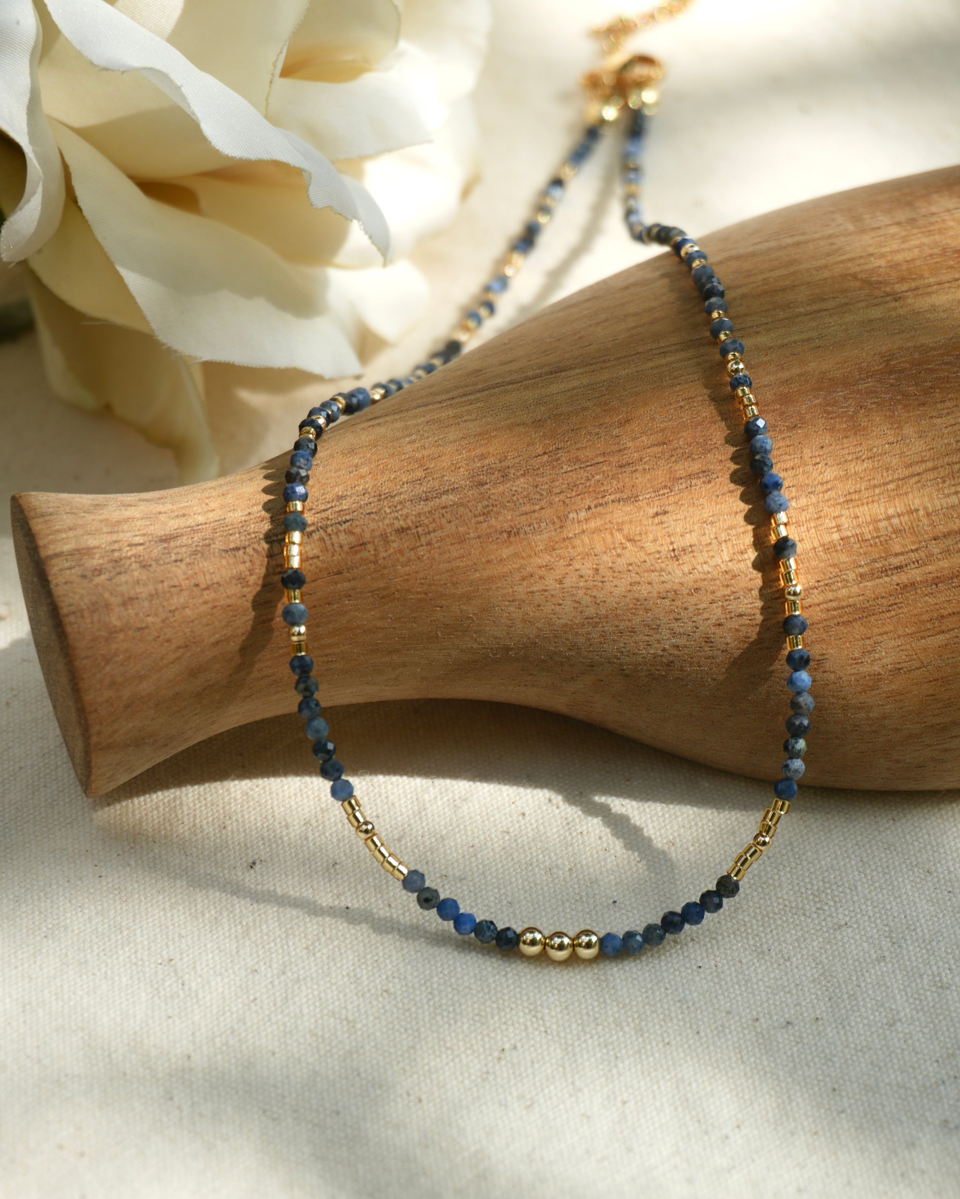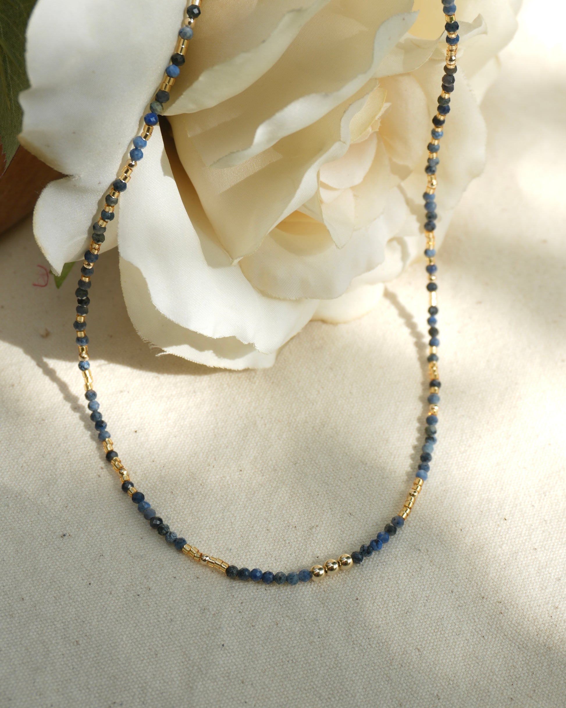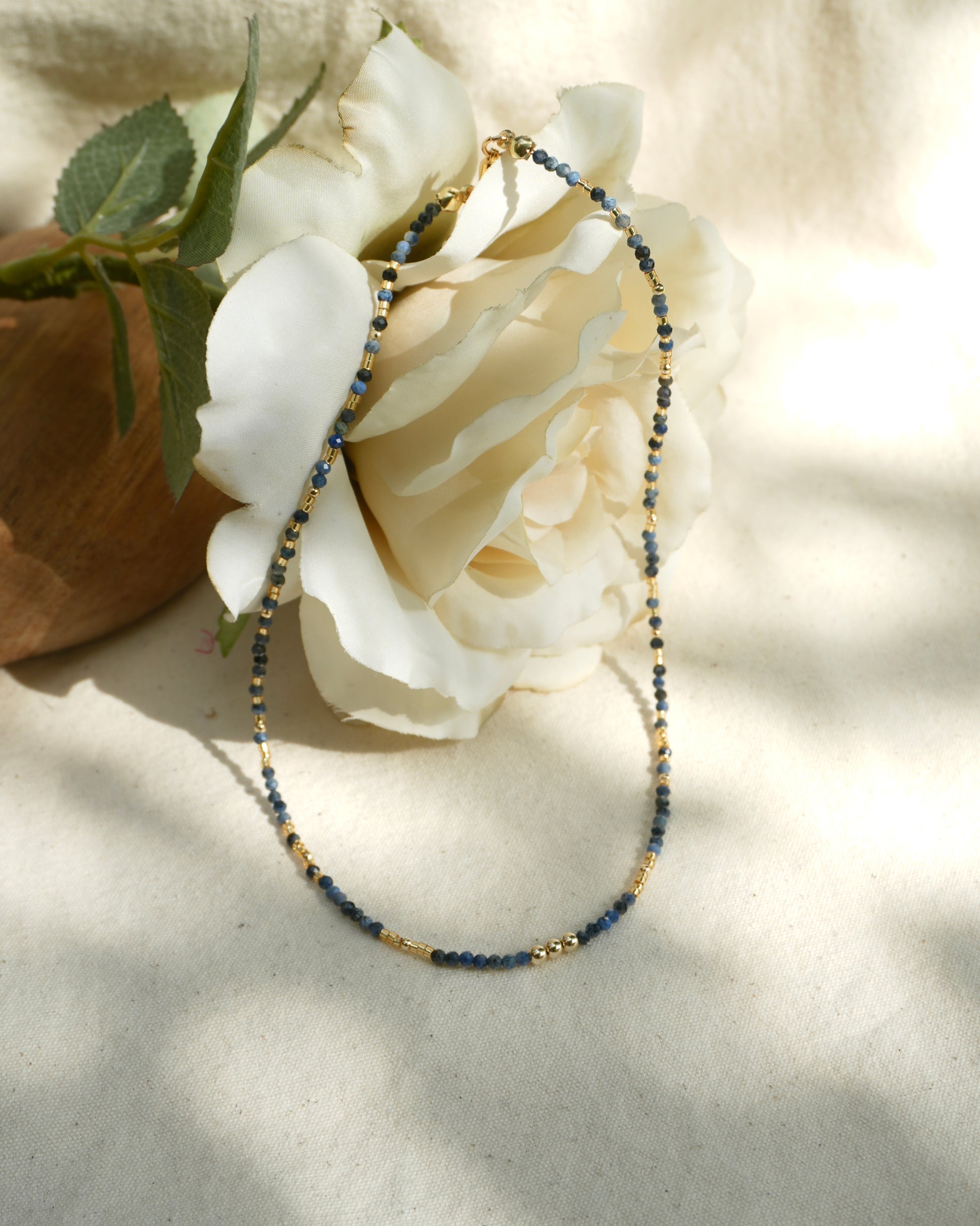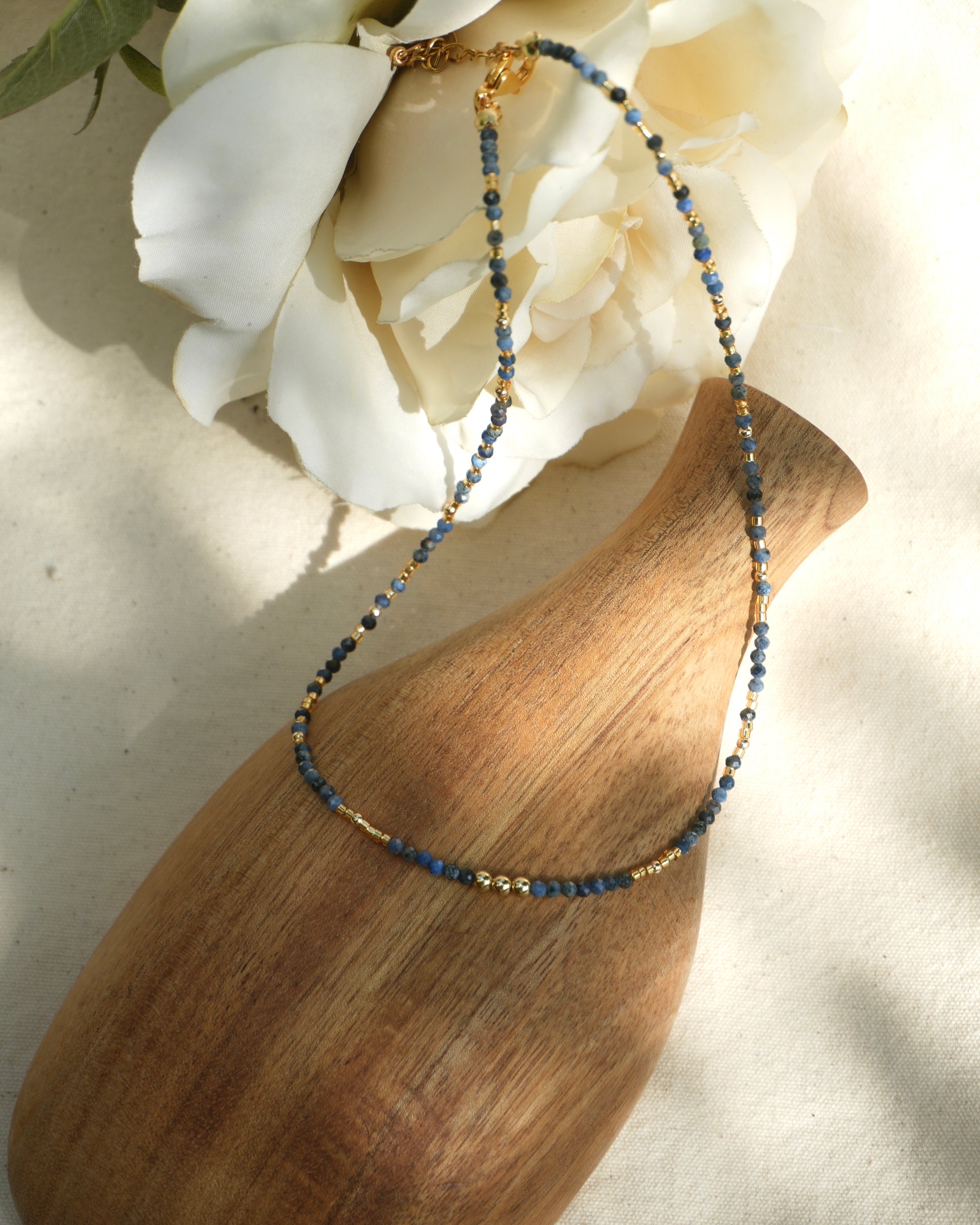 This handmade sapphire crystal necklace is a radiant tribute to the island soul, flowing water, and the golden light that finds its way to you—no matter how deep the tide.
