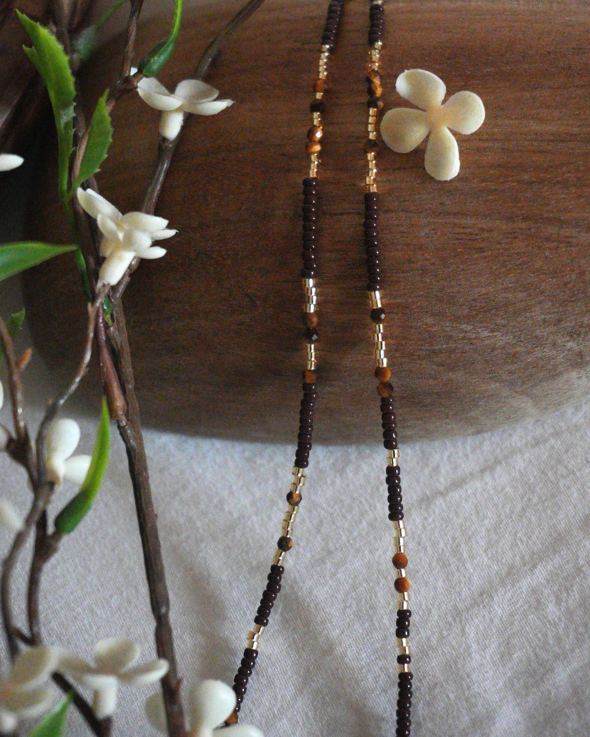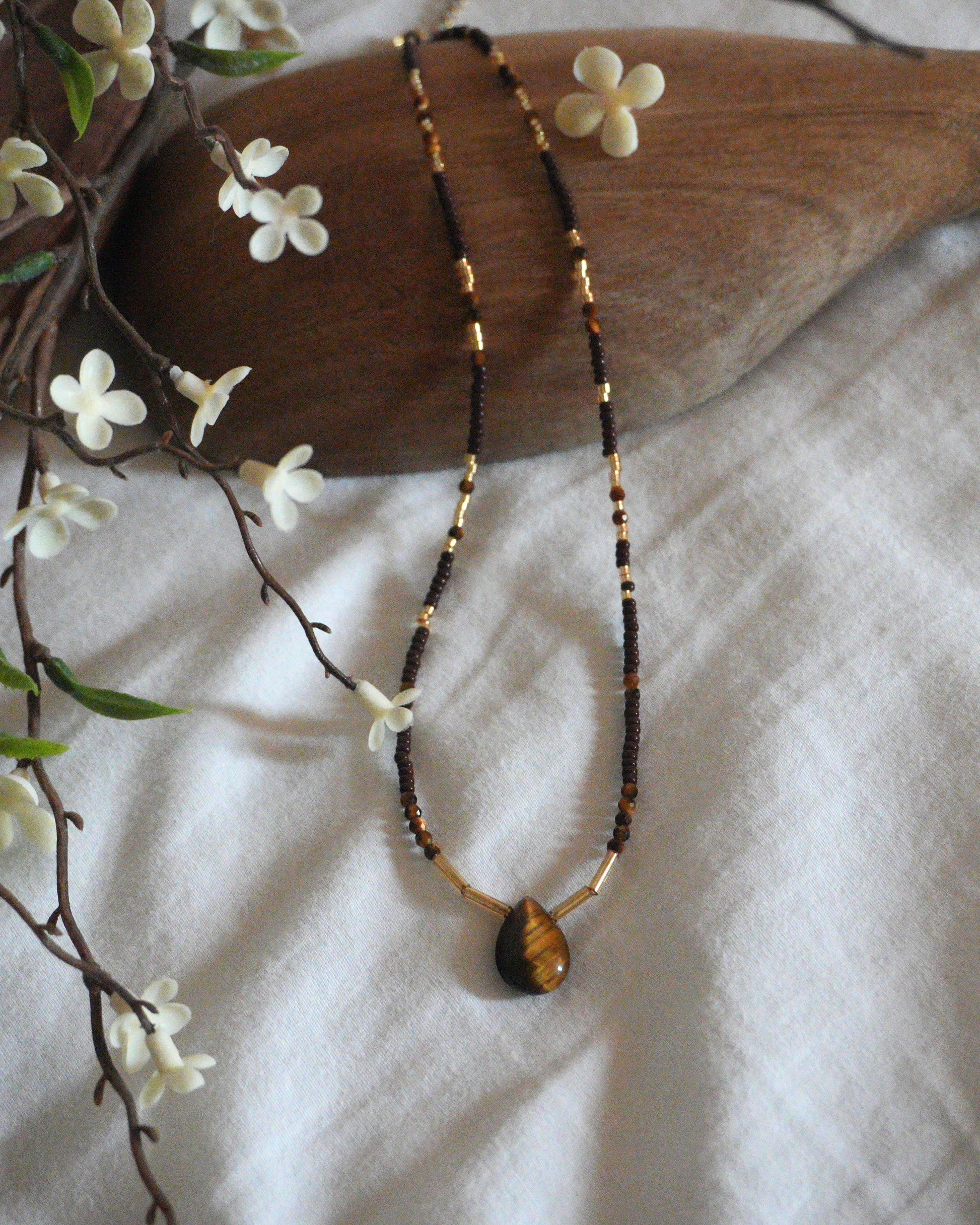 Inspired by the natural beauty of the Philippines, where palm trees grow in lush abundance and golden light that filters through the leaves, this handmade necklace captures the spirit of the islands. Featuring genuine Tiger’s Eye crystal beads and high-quality Miyuki gold and brown seed beads, this piece blends earthy elegance with meaningful intention.